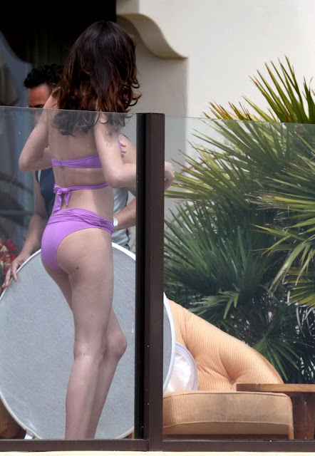 Looking "delicious" she is showing off her gorgeous post baby body in a sheer top and tight pants. The people, who have been harshly judging her body and calling her "fat" since the new pictures from the photo shoot on April 24, will now probably shut their mouths.By the way this recent photo shoot is claimed to be for the swimwear brand called Have Faith, however I am fairly sure that is a mistake as that brand does not reach Miranda's standards. (photo of a model that represents Have Faith is on the right)